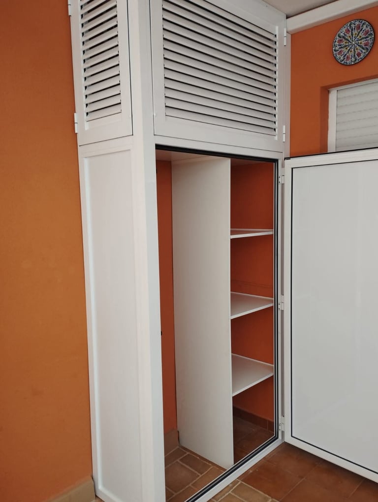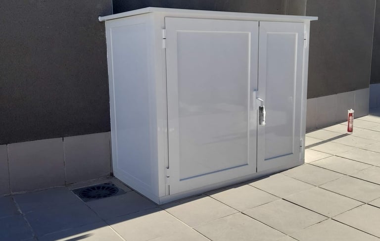 Diseñamos e instalamos armarios resistentes para exteriores, ideales para proteger objetos y aprovechar espacios en terrazas, patios o zonas comunes. Trabajamos con materiales duraderos preparados para el uso diario.